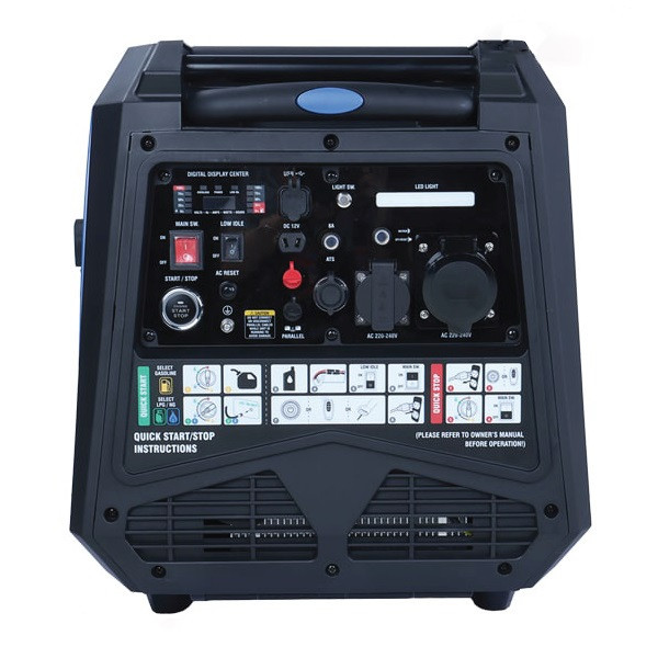دارای چرخ , تکفاز , استارت الکتریکی , استارت دستی , ولتاژ خروجی 12 ولت DC