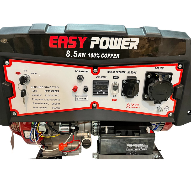 استارت الکتریکی , استارت دستی , تکفاز , دارای چرخ , سیستم خنککنندگی از راه روغن , ولتاژ خروجی 12 ولت DC