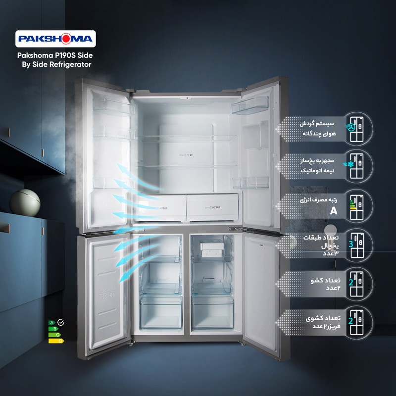نوع یخچال فریزر: ساید بای ساید