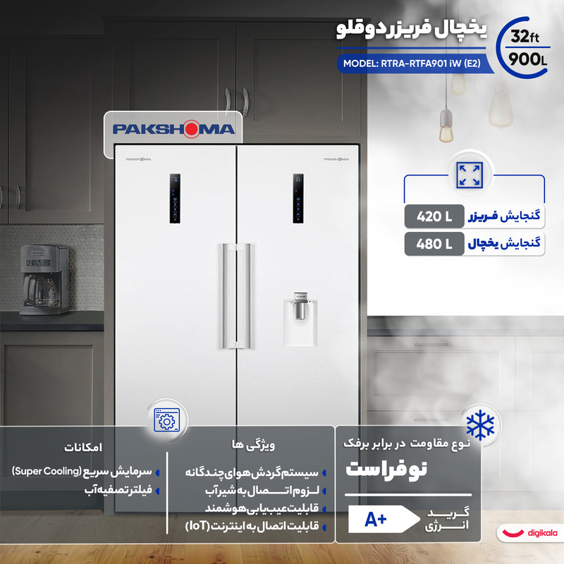 سیستم گردش هوای چندگانه , هشدار باز بودن درب , قابلیت عیبیابی هوشمند , قابلیت اتصال به اینترنت (IoT) , لزوم اتصال به شیر آب