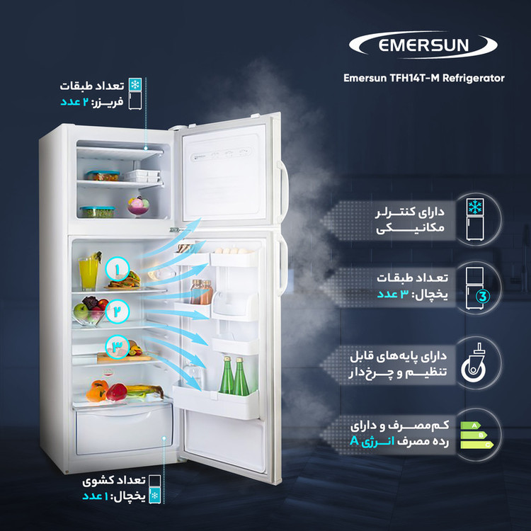 - گنجایش 14 فوت - کنترلر مکانیکی - طبقات شیشه ای نشکن - جالبنیاتی و جابطری - کشوی میوه و سبزیجات تازه - پایه های قابل تنظیم و چرخ دار