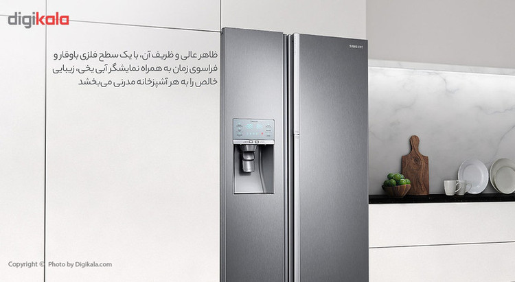 یخچال و فریزر مدل «FSR12» از گروه یخچال و فریزرهای سایدبایساید شرکت معتبر «سامسونگ» است. این دستگاه با گنجایش کلی بیش از 30 فوت، مناسب استفادهی خانوادههای کمجمعیت تا متوسط است. مصرف انرژی A++ این دستگاه، آن را در گروه دستگاههای کممصرف قرار میدهد. ظاهر زیبای این دستگاه با همراهی دو دستهی عمودی ِساده تکمیل میشود. پنل کنترلی دستگاه برای انتخاب یخ یا آبخنک و... روی در فریزر نصب شده است. این قسمت دارای یک پدال زیبا و بادوام است تا دسترسی به آب و یخ راحتتر شود. کمپرسور این دستگاه از نوع Digital Inverter Compressor (کمپرسور اینورتر دیجیتال) است که باعث افزایش عمر و بهبود راندمان دستگاه میشود. داخل یخچال طبقات متعدد و کشوهایی در نظر گرفته شده است تا مواد غذایی و ظروف مرتب چیده شوند. طبقهای برای قرارگیری بطری بهصورت افقی نیز داخل یخچال قرار دارد. سمت داخلی در هم دارای طبقاتی است که میتوان مواد غذایی و بطریها را در آنها قرار داد. وجود طبقات متعدد و کشو در فریزر هم باعث منظمشدن و کارآمدترشدن فضای فریزر میشود. روی در فریزر هم سه طبقه در نظر گرفته شده است و قسمت بالایی در، برای یخسازی استفاده میشود. برای تولید یخ و استفاده از آبسردکن، دستگاه باید به شیر آب شهری متصل شود. طبقات انعطافپذیر FSR12 امکان تغییر فضای ذخیرهسازی را برای کاربر فراهم میآورد. این طبقهها بهراحتی جدا شده و به بالا و پایین حرکت میکنند تا با هر سایزی از مواد غذایی و ظروف مختلف هماهنگ شوند. کشوهای عمیق سایدبایساید سامسونگ، فضای ذخیرهسازی بسیار بیشتری را برای یخچال و فریزر فراهم میآورد. عمیقتر و بزرگتربودن این کشوها امکان میدهد تا بتوان مواد غذایی را بهسادگی در کشو قرار داد و از آن خارج کرد. شرکت سامسونگ مشتریان زیادی را به سمت خود کشانده و با ارائهی خدمات پس از فروش مناسب، آنها را راضی نگه داشته است.