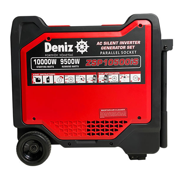استارت دستی , استارت الکتریکی , تکفاز , دارای چرخ , سیستم خنککنندگی از راه هوا , ولتاژ خروجی 12 ولت DC