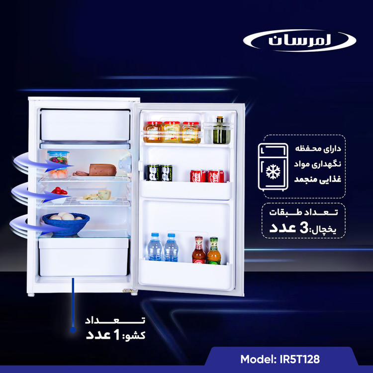 گنجایش 5 فوت کنترلر مکانیکی محفظه نگهداری مواد غذایی منجمد طبقات فلزی امکان نگهداری انواع بطری در قسمت در کشوی میوه و سبزیجات تازه پایه های قابل تنظیم و چرخ دار
