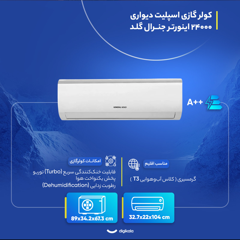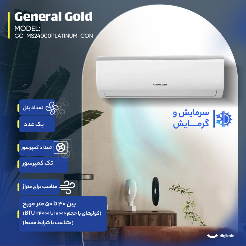 نمایشگر دیجیتال روی ریموت , کنترل کامل تنظیمات دما و فن , تنظیم جهت پرتاب باد از راه دور , قابلیت تنظیم حالت توربو از ریموت , طراحی ارگونومیک و سبک