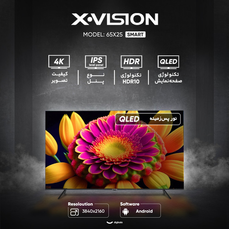 تلویزیون ۶۵ اینچ ال ای دی هوشمند ایکس ویژن مدل 65X25 با طراحی صفحه تخت و گرید انرژی B، گزینهای پیشرفته برای افرادی است که ترکیبی از کیفیت تصویر بالا و امکانات هوشمند را بهدنبال دارند. این محصول از تکنولوژی صفحه نمایش QLED بهره میبرد که در کنار پنل IPS Level Panel، رنگهایی زنده، شفافیت فوقالعاده و زاویه دید گسترده ۱۷۶ درجه را ارائه میدهد. رزولوشن ۳۸۴۰×۲۱۶۰ پیکسل با نسبت تصویر ۱۶:۹ و کیفیت ۴K باعث نمایش جزئیات دقیق و واقعی میشود. نرخ تازهسازی تصویر ۶۰ هرتز، روشنایی ۳۶۰ نیت، نسبت کنتراست ۱۵۰۰ و زمان پاسخدهی سریع ۸ میلیثانیه تجربهای روان و بدون تاری از محتوای ویدئویی را تضمین میکنند. همچنین پشتیبانی از فرمتهای HDR10، نمایش محتوای دارای دامنه دینامیکی بالا را امکانپذیر ساخته است.