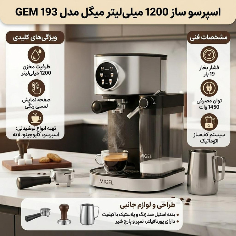 اسپرسو ساز 1200 میلی‌لیتر میگل مدل GEM 193
