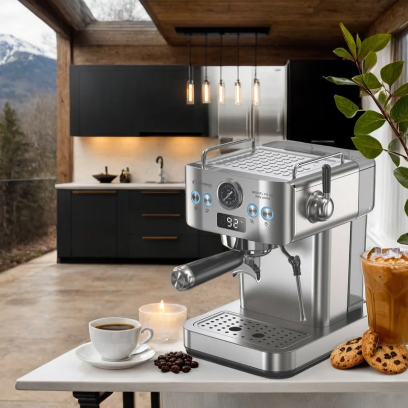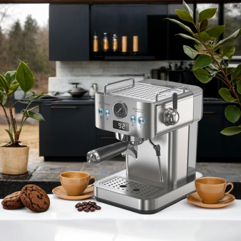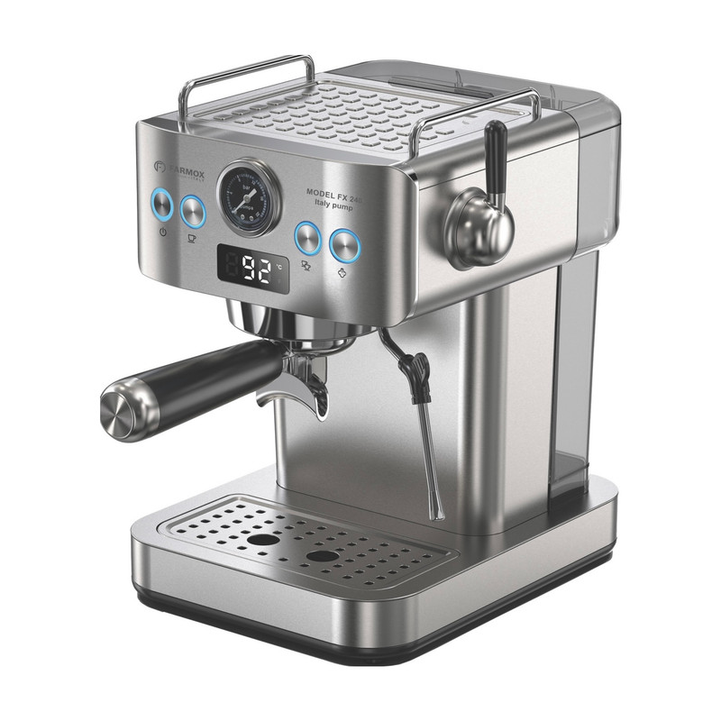 این دستگاه دارای یک عقربه فشار سنج و همچنین یک صفحه دیجیتال نشانگر دمای اب و بخار میباشد ، مدل FX240 فارموکس مناسب افراد سخت پسندی میباشد که به دنبال تهیه یک اسپرسوی حرفه ای هستند ، و همچنین کاربری ساده و اسان از دستگاه .