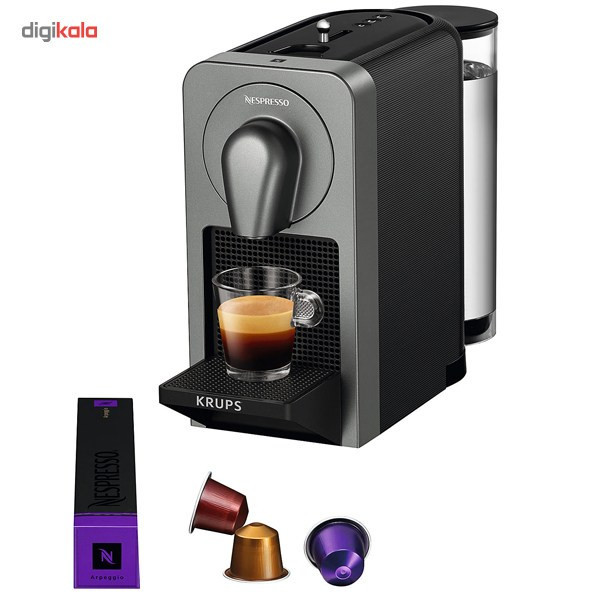اسپرسوساز کروپس مدل Nespresso Prodigio دستگاهی حرفه ای و کاربردی با عملکرد تمام اتومات برای تهیه نوشیدنی های متنوع از کپسول های خوش طعم نسپرسو است. کافی است کاربر پس از قرار دادن لیوان خود زیر خروجی و قرار دادن کپسول دلخواهش داخل دستگاه، کمی منتظر باشد تا قهوه با طعم مورد نظرش آماده شود و به داخل لیوان کوچک بریزد. کار با این دستگاه بسیار ساده است و تنها لازم است تا مخزن آب در پشت دستگاه به میزان کافی آب داشته باشد و کپسول های دلخواه نسپرسو تهیه شوند. اسپرسوساز کروپس مدل Nespresso Prodigio ظاهر زیبایی هم دارد و در محل استفاده مثل منازل و ادارات به اتاق کار یا آشپزخانه زیبایی خاصی می بخشد. خارج شدن کپسول های استفاده شده به صورت اتوماتیک صورت می گیرد. کروپس از برترین و معتبرترین تولید و عرضه کنندگان دستگاه های قهوه و اسپرسوساز است که در سراسر جهان شناخته شده است.