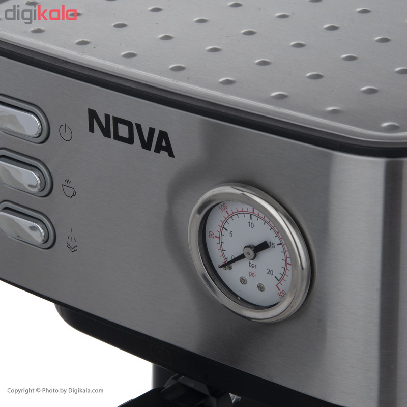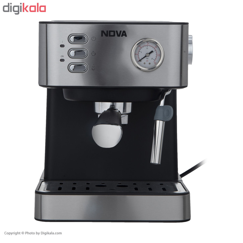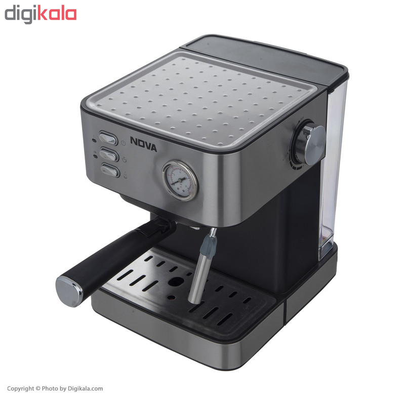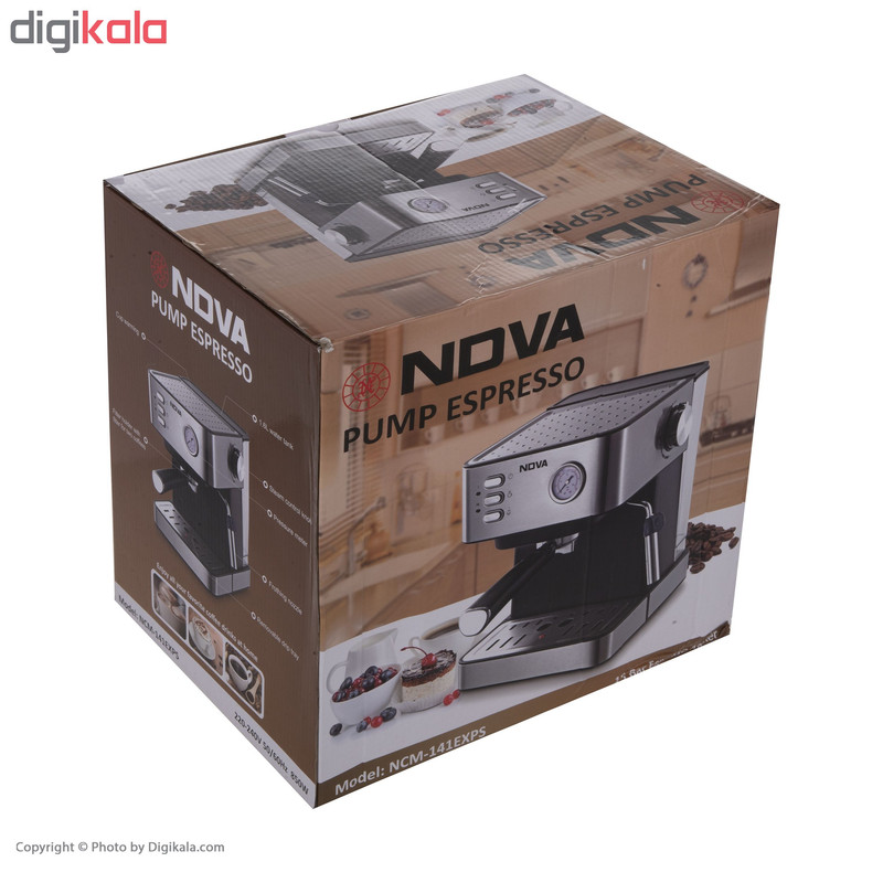 اگر شما هم از طرفداران پروپاقرص قهوه هستید وجود یک قهوهساب در خانه میتواند روزتان را بهتر کند. طعم بینظیر این نوشیدنی دلچسب شروع یک روز پرانرژی را برایتان رقم میزند و میتواند خستگی را در یک عصر پرمشغله از تنتان در کند. دستگاههای قهوهساز برقی و غیر برقی و اسپرسوسازهای خانگی برای تهیهی انواع قهوه کاربرد دارند و تهیهی این نوشیدنی را برای ما آسان کردهاند. اسپرسوساز مدل NCM-141EXPS محصولی از برند «نوا» (Nova) است که با ابعاد 215 × 275 × 285 میلیمتر طراحی و تولید شده است. در قسمت جلوی این محصول یک فشارسنج عقربهای قرارگرفته و در قسمت بالای آن یک صفحه گرم نگهدارنده فنجان قرار گرفته است. علاوه بر این اسپرسوساز نوا از یک نازل بخار بهره میگیرد که تهیه نوشیدنی های مختلف از جمله اسپرسو ، کافه لاته و کاپوچینو را امکانپذیر میکند. قرار گرفتن سینی چکهگیردر قسمت پایین دستگاه از کثیفشدن سطح میز جلوگیری کرده و نظافت دستگاه را آسان میکند.