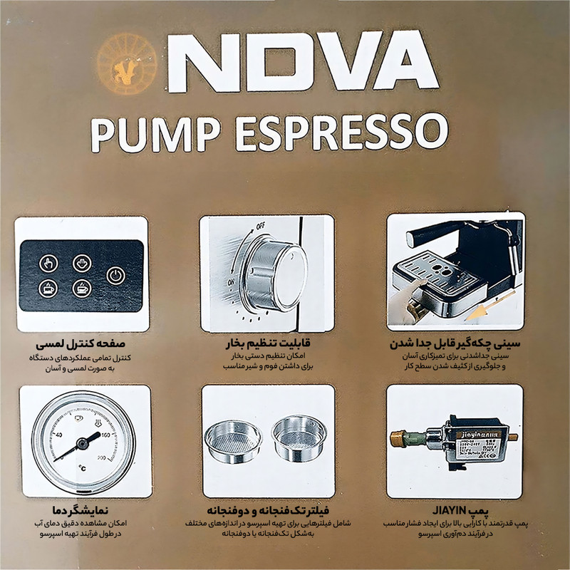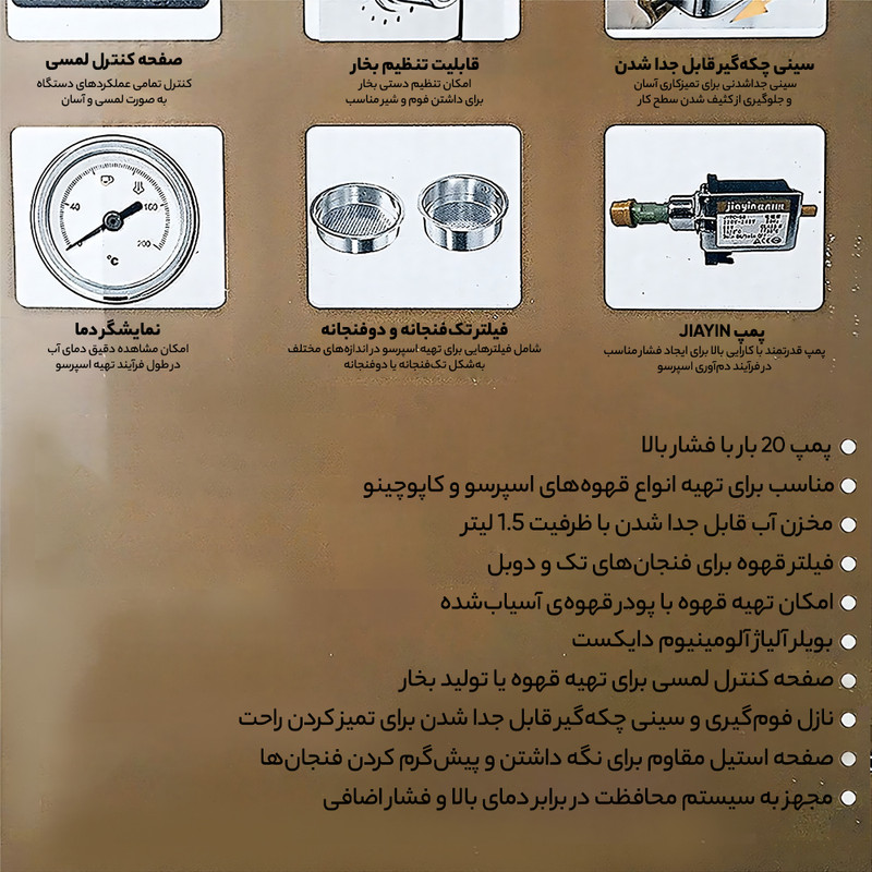 دستهبندی: اسپرسو سازطول سیم: 45 سانتی متروزن: 4.9 کیلوگرمشناسه کالا: 2620153174696ابعاد: 20x29x25 سانتیمتر