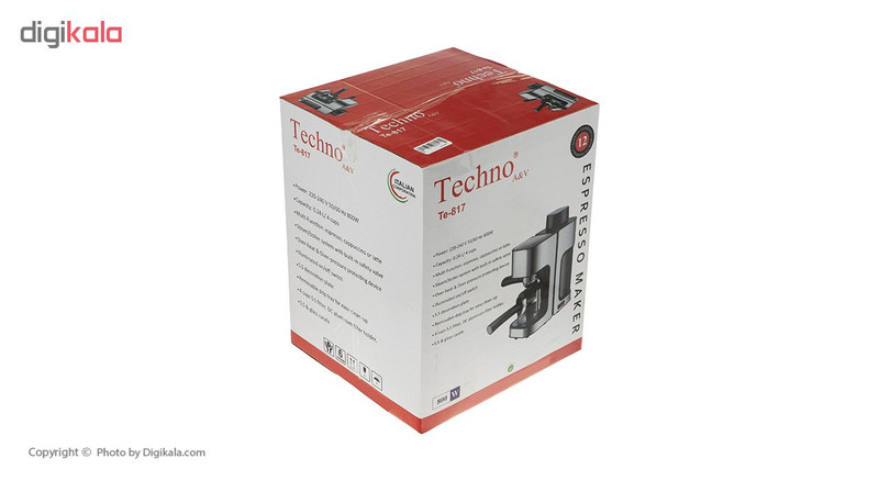 اسپرسوساز «تکنو» (Techno) مدل «Te-817» محصولی حرفهای برای تهیهی قهوه به روشهای مختلف است. میتوانید از این دستگاه برای تهیهی اسپرسو، کاپوچینو و لاته استفاده کنید. مخزن آب با گنجایش 1.7 لیتر طراحی شده است. بهعلاوه این میتواند با استفاده از این مدل کف شیر تهیه کند؛ درنتیجه میتوانید نوشیدنیهای ترکیبی قهوه و شیر را با این دستگاه سرو کنید. این دستگاه با قابلیت تغذیه از طریق پودرقهوه، نتیجهای خوش طعم را برای کاربر به همراه دارد. این محصول دارای توان 800 واتی است که نشان از قدرت بالای آن دارد. این محصول دارای نازل بخار است و در اقلام همراه آن تمپر قهوه هم به چشم میخورد. داشتن سینی چکهگیر متحرک هم دیگر ویژگی این دستگاه مدرن است. سیستم مقاوم در براب دما و فشار بیش از حد هم ارزش خرید بالایی به این دستگاه داده است. گفتنی است این دستگاه دارای یک نازل خروجی قهوه است و بهاینترتیب میتوانید یک فنجان قهوهی کوچک یا یک فنجان بزرگ را زیر آن قرار دهید.