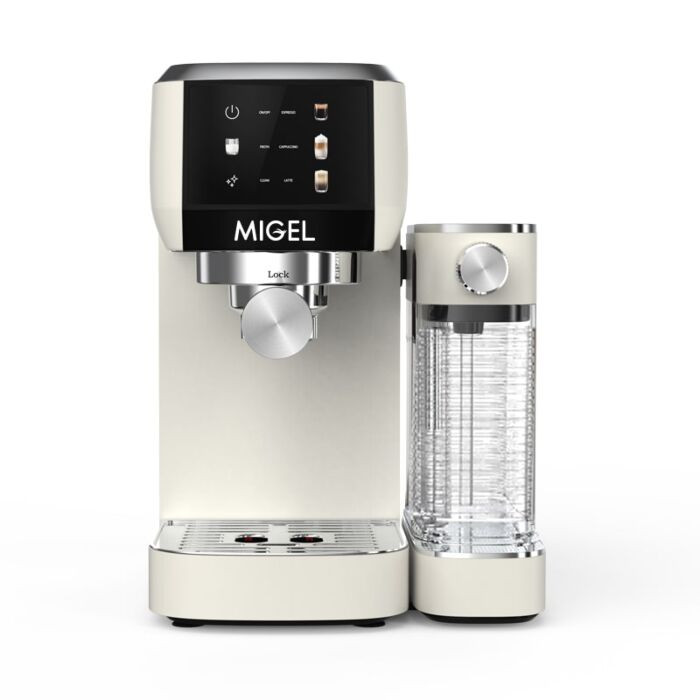 اسپروسوساز میگل مدل GEM 195 با صفحه نمایش دیجیتال رنگی وقابلیت تنظیم دما برای انواع قهوه دستگاهی فوق العاده جهت تهیه یک فنجان قهوه اسپرسو تک و یا دوبل و یا انواع قهوه اسپرسو به همراه شیر می باشد.