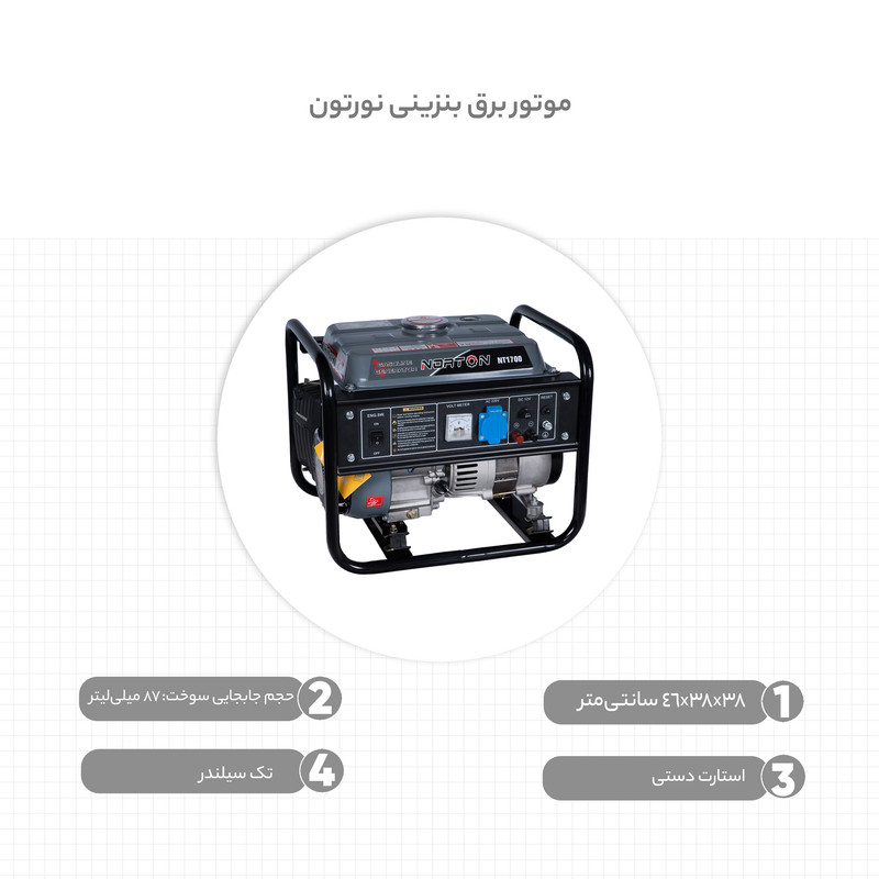 حجم جابجایی سوخت: 87 میلیلیتر دمای کارکرد: 40 درجه سانتیگراد فرکانس: 50 هرتز ولتاژ 220 ولت